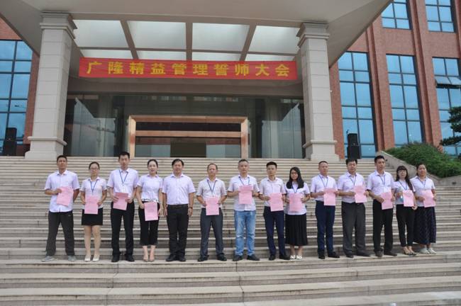 凝聚团队力量、激情成就梦想,在王副总的带领下,各部门经理代表部门全体成员在大会上向公司郑重承诺:此次精益管理活动中,将带领小组全体人员坚决执行公司决策,全力以赴,保证完成精益管理任务,达成部门目标。并向精益管理推进小组组长递交承诺书,同时梁总为精益管理推进小组组员颁发聘书。接着梁总带领全体人员集体宣誓,表达为广隆的振兴而拼搏的决心。